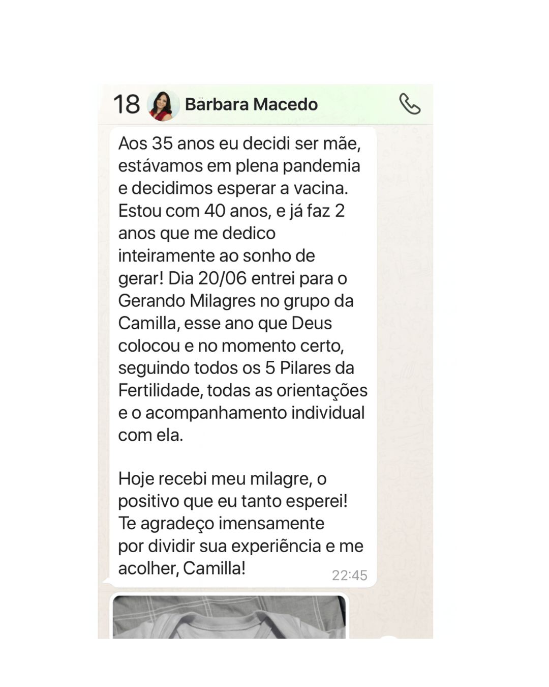 Após perdas gestacionais e nas tentativas de engravidar, começou a atuar ajudando mulheres a se prepararem para a gerar vidas — com saúde, ciência e fé.